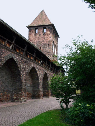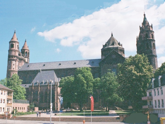Tuesday, 22 August. Right after breakfast we started driving north. We turned off the autobahn for a short visit to Worms, primarily to see the 13th century Cathedral. We took a look in the city museum, too, which is devoted primarily to proving the antiquity of the city through artifacts of ancient peoples. A large stretch of the medieval town wall still stands, as well as the huge gatehouse to the old bridge into the city.