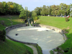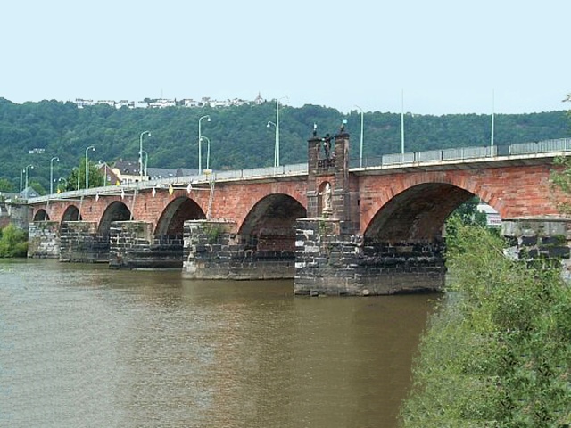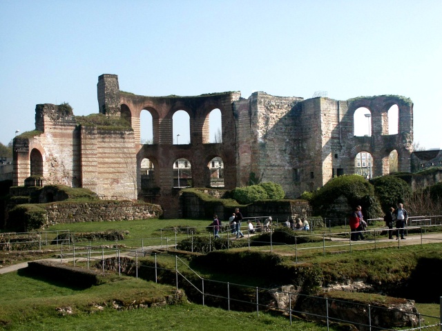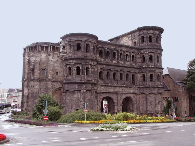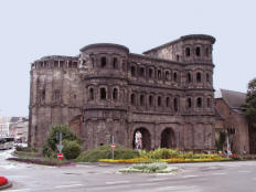 The most famous of these is the Porta Negra (Black Gate)(c.180 A.D.), once the northern entrance to the Roman city. It's an unusual gate because it has nearly 150 windows in it. Trier also has a Roman Bridge (c. 150 A.D.); an amphitheater that had a seating capacity of about 20,000, the oldest Roman ruin in Trier (before 100 A.D.); the Imperial Baths begun by Emperor Constantine (early 4th century) but never finished; and the huge Basilica (c. 300 A.D.), once the throne room of Emperor Constantine, but later converted into a church. St. Matthias, the Apostle, is also buried in Trier.