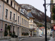 Tuesday, 29 August. By the time we ate breakfast, got everything packed and in the car, and got on our way, it was almost 11:00. We drove south on the "autoroute," France's only superhighway, for its full 25-mile length, then headed southwest through Dijon.  Main road through Morez |