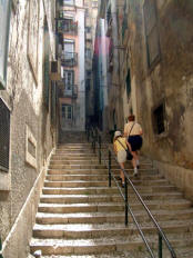 Built on one of Lisbon's seven hills, Alfama is very hilly. There are steps everywhere, some wide, some narrow, but all very picturesque. This is the oldest part of the city and, as is usually the case, home to some of the poorest inhabitants. Most of the buildings date back to the four centuries of Moorish occupation (8th-12th century).