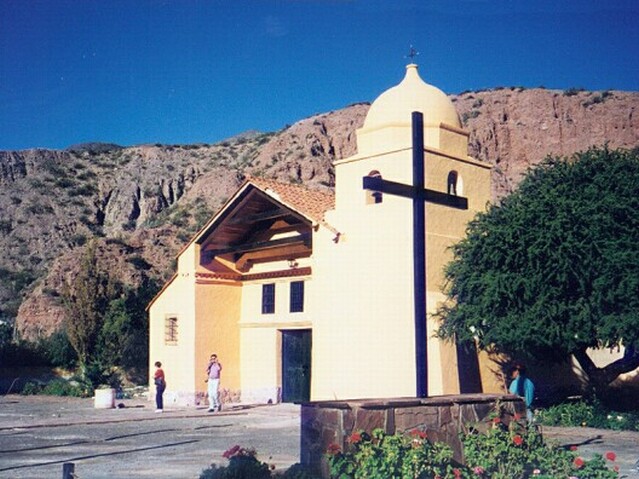 After lunch, the tour bus headed back to the south. We (especially Jane) had been in the hot sun on the drive north; now that it was afternoon, we were in the sun again going south. It was miserable! Our first stop, only a few miles down the road, was the village of Uquia. It had the oldest church in the area, a small chapel built in 1691, still with the original altar.