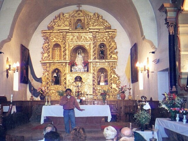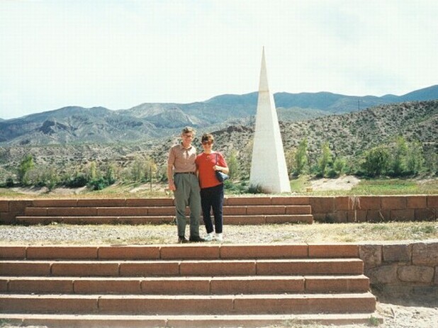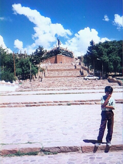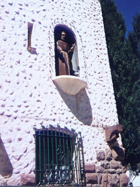 Our next stop was at Purmamarca (pop. 150; alt. 6825 ft.), a picturesque village lying at the foot of the spectacular Mountain of Seven Colors. Here there were rest rooms, as well as numerous stands at which the Indian inhabitants sold artifacts they made. It was a long stop, and we had plenty of time to browse. It appeared that the tourist buses were the primary, perhaps the only, source of revenue for the villagers. The bus continued on to Tilcara (pop 2,200; alt. 8000 ft), famous for its restored hilltop pucara' (fortress), probably a 10th century Indian village. There was also an interesting cactus garden there. One very large variety was named "old man's head" (cabeza de viejo) and looked it, life-size with gray hair covering the bulbous tips of each limb. As the bus continued north, we crossed the Tropic of Capricorn, marked by a large concrete monument. We had now left the Temperate Zone and were in the Tropic Zone. The bus didn't stop again until we got to Humahuaca (pop 4,000; alt. 9550 ft.), our northernmost destination. The driver was rushing to get us to the main square before noon, when an automated statue of St. Francis Solano on the front of the Cabildo (rebuilt in 1930) makes its daily appearance to give his blessing. The pretty town church (rebuilt in 1723) was also on the same square. It has an large gilded altar and reredos. On another side of the square was wide, long stairway leading to the top of the hill where stood a huge monument to the War of Independence. We all had lunch at a restaurant called La Pena de Fortunato. We sat next to a young British couple. She spoke Spanish and translated for him. It was our best lunch experience in Argentina. They served "regional food." We tried the empanadas, choco de humita' (corn husks filled with grated corn mixed with a sauce of onion, pepper, tomato, and sweet basil), and locro (a watery stew of boiled corn, other vegetables and various unidentifiable bits of meat, including tripe). We passed on the cabrito (kid) and took ice cream rather than the alfajores, pastries with a very sweet filling.