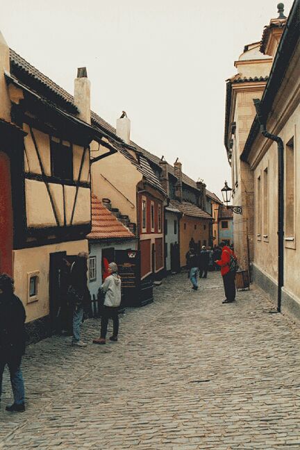 We continued on to Golden Lane, a narrow street along the north castle wall. The name comes from the many alchemists who lived here in the late 16th century under Emperor Rudolph II, a great patron of science. Three centuries later, one of the tiny apartments (literally, a hole in the wall) was home to Franz Kafka. In a few minutes break from the tour, we visited a museum inside the wall. It contained mostly medieval armor, weapons, and clothes.