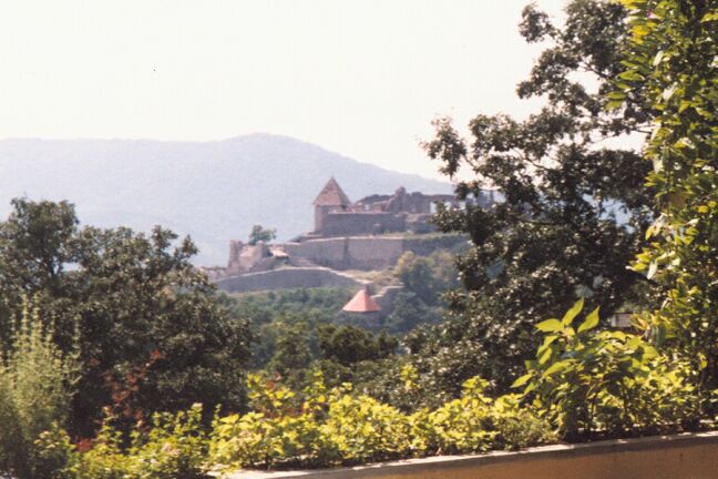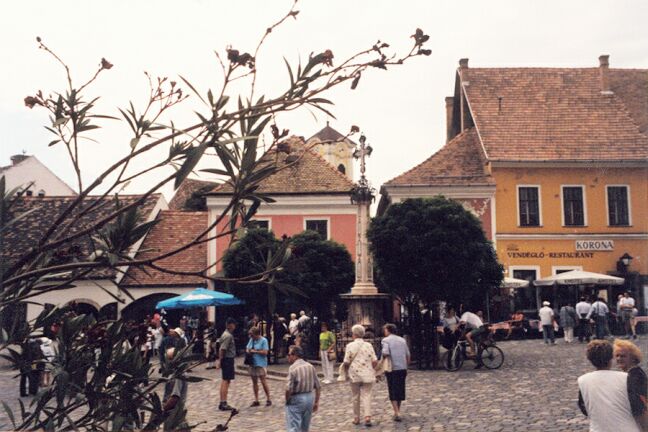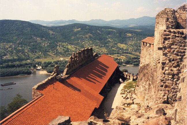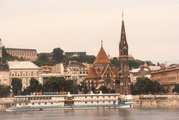 We boarded our bus and rode to Visegrad on the Danube Bend. The Bend is so named because the Danube River makes an abrupt 90 degree turn at that point, turning south when its eastern flow is blocked by low mountains. Visegrad was the capital of Hungary before the mid-13th century. We drove by the ruins of the old Royal Palace, only a few yards from the Danube. We had lunch at a restaurant with a view across to the old citadel on a high hill overlooking the river. Supposedly we had "mixed game" soup. It was full of meat, but all of it looked the same, tender and tasty, but very dark in color. In fact, it looked just like the meat we were then served for the main course, but none of us could figure out what that was either, possibly venison. Anyway, it was another huge meal, and with unlimited wine. After lunch the group headed for the citadel, partially in ruins after being blown up by the Austrians in 1849, like most fortifications, to prevent its use against them. We climbed all the way to the top and had a fantastic view of the Danube Bend. On the way down we toured the wax works, made up entirely of exhibits of implements of torture. As the bus drove through a small village on the way back, we saw a large storks' nest on top of a utility tower and another stork on a street light. On the outskirts of Obuda, we passed through the remains of Aquincum, for 400 years a Roman military camp and civilian town. It was established by legionnaires in 12 A.D. when the Danube here was the edge of the Roman Empire. It was part of the Roman province of Lower Pannonia. Hadrian, later Emperor of Rome, was governor here as a young man. Pannonia was finally overrun by the Huns in 433 A.D. Acquincum was a large settlement, and the remains of villas, baths, shops, and two amphitheaters were surprisingly well preserved, though often only as foundations and low walls. An aqueduct several miles long ran right along the highway. Fighting its way through heavy traffic, the bus got back to the hotel around five. We went up to the fitness center to try to work off some of the heavy lunch (and wine). We rested a while, then had a light meal (tuna) in the Grill at nine, using the second $18 voucher. Afterward we decided to go for a walk across the Chain Bridge. On the way out of the hotel, we met another couple, Harry and Connie, who asked if they could join us. The weather was pleasantly cool, and the view of Mathias Church and the Presbyterian Church below it was spectacular. The view back across the river toward Parliament was also great. On the walk back, though, two young men attached themselves to us. I loudly told them to keep away from me, and they did. As Harry lagged behind, they pretended to be interested in buying his belt. That allowed them to get close enough to pick his pocket of about $35 in loose bills he had in his side pocket. He noticed that the money was gone within a minute or two after they left us, but it was too late to do anything. It was eleven by the time we got back to the hotel.