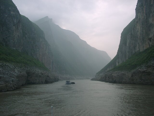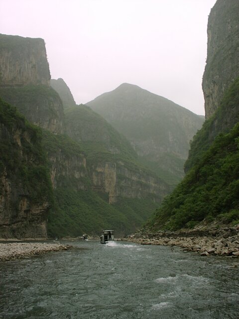 heavy overcast. That plus the early hour gave the gorge an eerie look. The Qutang is the shortest