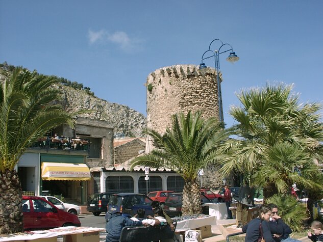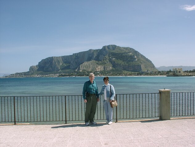The bus then took us to a pizzeria in Mondello for lunch. Mondello is a pretty beach resort only a few miles up the coast from Palermo. It faces the west side of Mount Pelegrino, as opposed to the east side we could see in the distance from Trabia. We had nearly an hour after lunch to stroll the beach before boarding the bus. We were back at our hotel about 4:15. We enjoyed a leisurely evening with another excellent (and large) dinner at the hotel.
