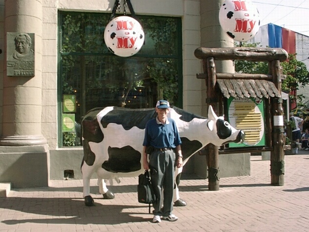 We emerged from the subway near Arbat street, said by our guide to be an upscale pedestrian street with fascinating shops. But we were disappointed and found it rather ordinary. Our group met "at the cow" at 5:30 and took the bus back to the Tolstoy. We had diner at 6:30 and retired before 10:00. Jane was exhausted and not feeling well. She had medical problems for most of the rest of the trip, but they will not be detailed in this journal. Let me just say that the Tolstoy had a resident doctor aboard, and Jane thought he was excellent. (He also served as the masseur.)