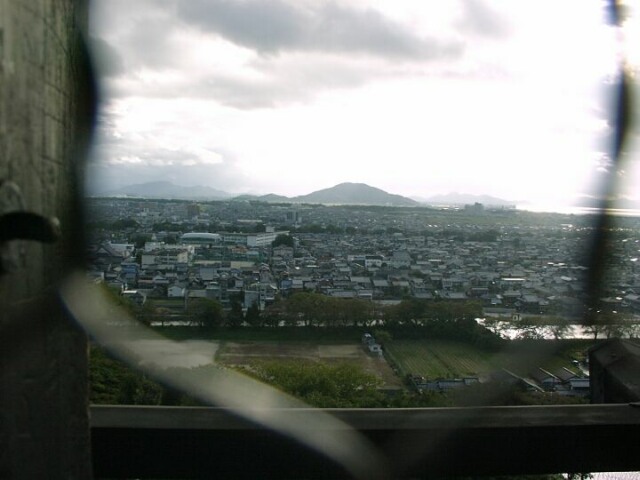 ![]() Page 1 2 3 4 5 6 7 8 9 10 11 12 13 14 15 16 Monday, 21 October. Despite a rainy morning, we decided to visit the Hikone Castle. The four of us left about 11:00 and had lunch in an Italian restaurant in Kamashina, where we had to change trains. The train took us around the south end of Lake Biwa and up the east side to Hikone. We took a taxi to the castle entrance, arriving about 2:00. The rain had stopped and the sky was clearing. As we started to cross the bridge over the castle moat, we (Jane in particular) were warmly greeted by a strange old man in costume. (More on him later.) We started our tour in the castle museum. The museum building is actually a replica of the palace of the castle's ruling lord (daimyo). In addition to the exhibition areas, it has rooms of the living quarters, a tea ceremony room, and a beautiful small garden. It also has the palace's original 17th century noh stage. (Noh is an old form of drama in which the actors hold masks in front of their faces.) The exhibits included samurai arms and armor, noh masks, musical instruments, beautiful folding screens, tableware and tea implements, and much more. This was the most interesting museum we saw in Japan, and one of the few that had adequate signs and brochures for English-speaking visitors. The main tower of the castle sits on the top of a high hill, and we had a long, steep climb to reach it. On the way up we crossed a unique wooden bridge and passed through a wide fortified gate, then under a large guard-house, before finally reaching the level of the main tower. This is one of only a dozen Japanese castle towers that is original (1622) and not a reconstruction. It is one of only four castles designated as a National Treasure. There was a line of people waiting to go up into the tower. We had to leave our shoes at the entrance, of course, and it was very uncomfortable climbing up the steep steps (almost ladders) because they had been covered with sharp-edged metal treads to protect them. Worse yet, there was two-way traffic on the narrow steps. There were three levels in the tower. Jane made it to the second level, but had to stop there because the steps were too much for her knees. Kyoko and I made it to the top where there was a nice view of the city, Lake Biwa, and the mountains. But the view was almost as good from the second level where Jane and Tom waited for us. Going down the steep steps was even harder than going up. Many people, including Jane, turned backwards and went down as you would on a ladder.