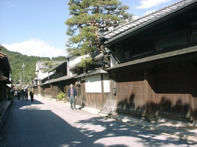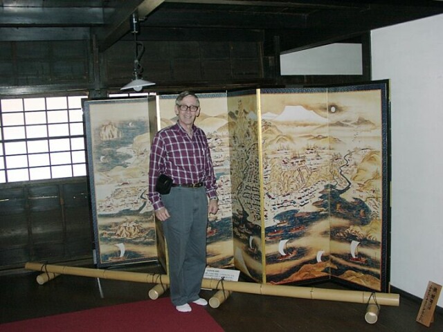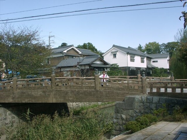 ![]() Page 1 2 3 4 5 6 7 8 9 10 11 12 13 14 15 16 Saturday, 26 October. I took a three-mile run before breakfast. The weather was cool and overcast, and it rained for a short time. Tom's friend, Tenda-san, who runs an antique shop, dropped by to meet us. He brought some vegetables for Kyoko, and we gave him a box of candy we'd brought from the States. There was a steady rain in the afternoon. Jane and I had planned to go to the Gion Corner in the evening. That's the performance we had decided to postponed at the last minute on the 14th. But Jane wasn't feeling very well so, between that and the weather, we canceled our plans. It turned out that we never did get to see the performance. Sunday, 27 October. Tom and Kyoko had an all-day bonsai club meeting and show, so Jane and I planned an excursion to Omi-Hachiman on our own. Omi-Hachiman is on the southeast side of Lake Biwa, a little closer than Hikone Castle that we had visited on the 21st. The town was founded by a feudal lord in 1585 and was noted for its prosperous merchants. We took the train from Sakamoto about 10:00 and had to change trains at Kamashina. To be safe, I asked (mostly using gestures) if this was the right train to Omi-Hachiman and was assured that it was. Once on the train, I asked another woman, and she indicated (actually using three or four words of English) that there was some kind of problem. It turned out that the train we were on only went as far as Yasu, the stop before Omi-Hachiman, so we had to get off there and continue on the next train.