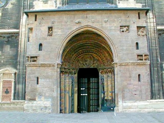 Janet pointed out the Giants' Door of the Cathedral, one of the few remaining parts of the earlier