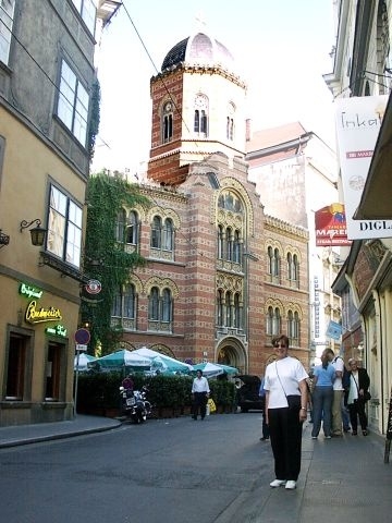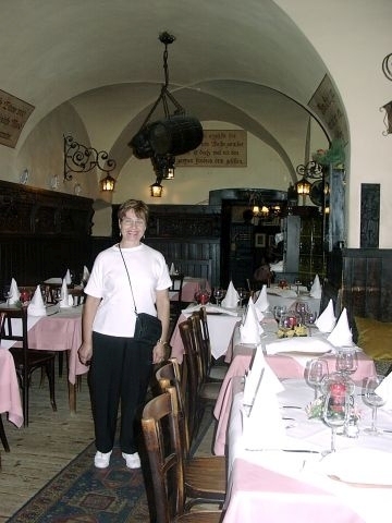 Continuing to our right, we came to a pleasant square (Lugeck) filled with tables from surrounding restaurants. At the end of the square was a beautiful white building. We still don't know what it was, though. We turned toward the Danube and proceeded to the Greek Orthodox Church and the Griechenbeisel (Greek Pub), an old inn (1447) claimed to be the oldest original building in Vienna.