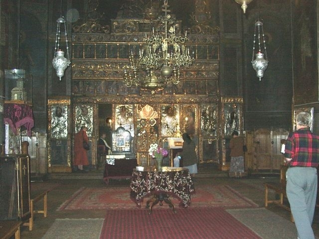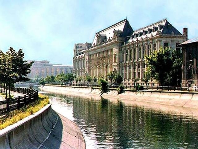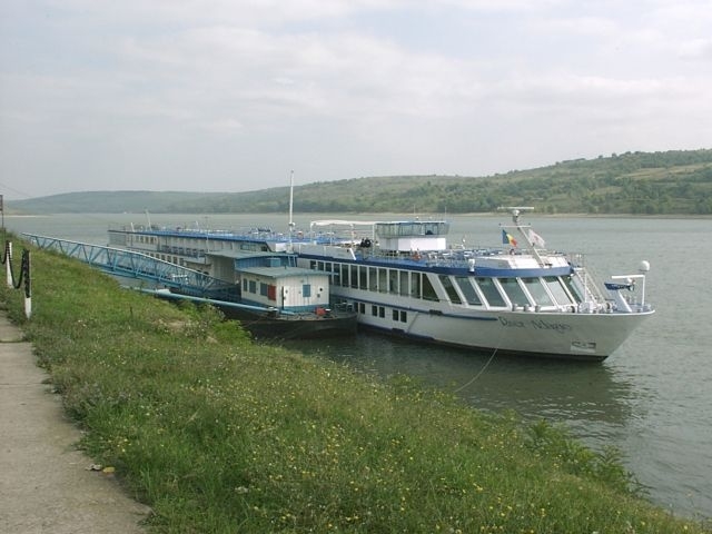 We continued down another street to some glass shops, but none of our group seemed very interested in shopping. Then we were led back to the Old Court Church (1559), Bucharest's oldest church, across the street from the Manuc Inn. Boarding the bus, we rode along a scenic stretch of the Dambovita River, past the Palace of Justice (court house) and the Opera House, and returned to the Marriott for a rest stop before driving to the M/S River Adagio, waiting for us at Oltenita.