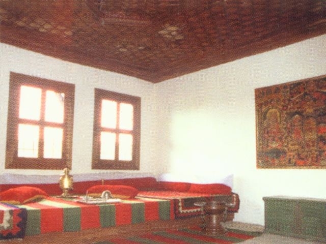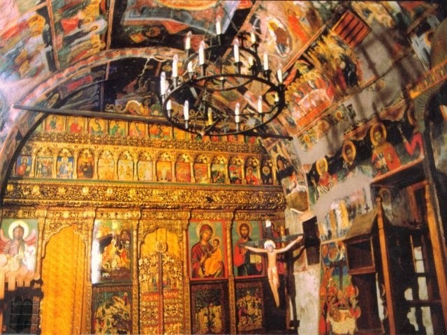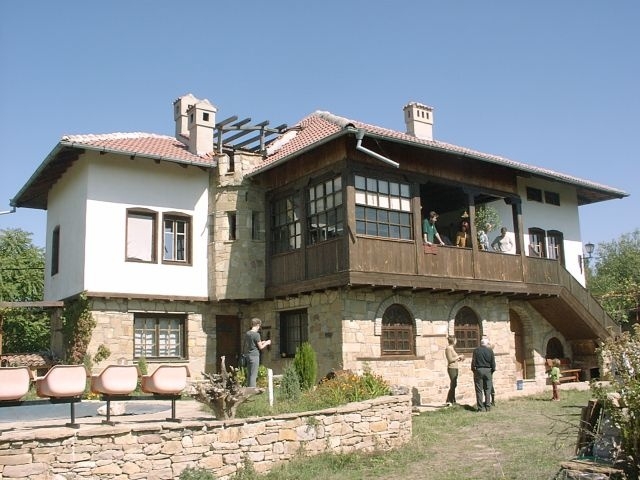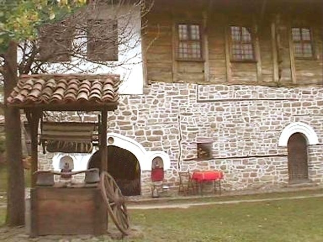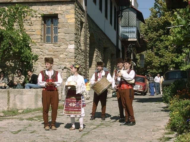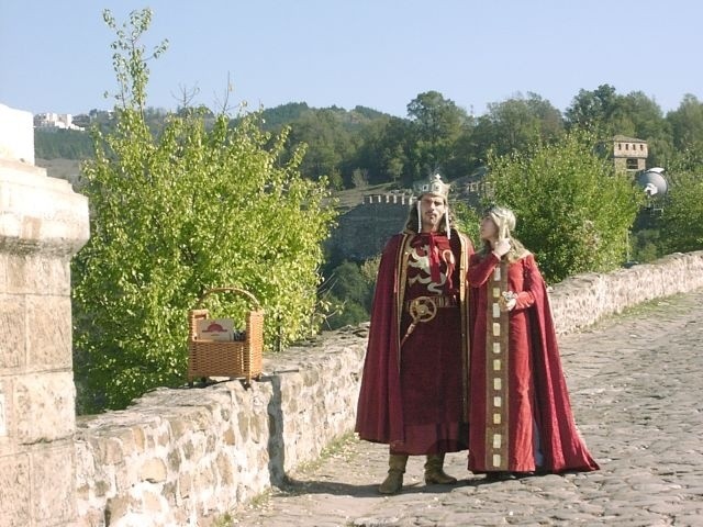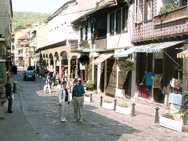 The buses left at 9:00 for a tour of southern Bulgaria. We thought that would include a tour of Ruse, but our local guide just pointed out a few things along the way as we passed through. Our primary destination was Veliko Tarnovo, one of Bulgaria's oldest towns. It was the capital of the Second Bulgarian Kingdom (1187-1393). This is when the Tsarevets fortress was built. The town played a major role in the formation of an independent Bulgaria again after the Turks were driven out in 1878. After the fall of Communism, the new democratic Bulgarian constitution was drafted here in 1990. Our first stop was at the square below the medieval fortress walls of Tsarevets. Although we didn't enter the fortress, we could easily see the ruins of the old palace and the Church of the Holy Savior on the hill. We even had a visit from the "king and queen". The square was filled with vendors, and we bought a small sketch of the fortress. Then our group walked a short way into the old section of the city where we were greeted by four costumed musicians and a woman who offered us a sweet bread. We had seen this same sort of welcome in Russia, so it may be a Slavic custom. We continued on to a major shopping street. Ceramics were the main attraction, and we bought a couple of large plates for our kitchen wall. We left Veliko Tarnovo at 12:30 and drove a few kilometers into the surrounding hills to Arbanassi, where we were split into smaller groups to have our "home-hosted" lunch. That's a very nice feature of most Grand Circle tours, but this time we were disappointed. The food was fine, but our hosts acted as our waiters rather than our companions, so we had little interaction with them. Also, we ate on the porch, and every part of the house was closed up so we couldn't see anything. Even when some of us asked to see the house, our hosts declined, although they did show some their garden. Finally, there was the problem of their three-year old daughter, very big for her age. She repeatedly rammed her tricycle into my leg while her mother watched and smiled. Then the girl began hitting and kicking me and eventually some of the others. Her parents made no effort to control her. We couldn't wait to leave. The whole group reassembled at 2:00 at Nativity Church, the most beautifully decorated of the village's old churches. It was rather plain and squat on the outside, but the interior walls and ceilings were covered (completely!) with richly colored frescos (17th century). We entered into a long gallery, its ceiling supported by wooden beams decorated with geometric designs and Greek inscriptions. At the end of the gallery, the chapel of John the Baptist, also elaborately decorated, was divided into separate areas for men and women. The main body of the church, to the right off the gallery, was similarly divided. There were built-in wooden chairs lining the walls in both chambers, and a gilded iconostasis at the front of the men's chamber. Our guide had arranged a special treat for us. As we sat in the chairs lining the men's chamber, four robed male singers entered and entertained us with beautiful religious music. We knew from our visit to Russia that, despite their garb, these men were not priests, but professional singers. As we left the church, they lingered outside the door, subtly hoping for some tips, but not soliciting. Our bus picked us up at the church at 2:50 and took us to the Hadzhi Hyeva House (16th century). This old merchant's house is now a museum, filled with original period furnishings. The buses left there at 3:40 for the drive back to Ruse. We were back at the boat in Ruse at 5:30. The weather was so beautiful that Jane and I decided to go for a walk on the promenade through the park along the river bank. We were back in time for the "port talk" at 6:30, then had dinner at 7:00. Afterwards we went to the lounge where we talked, listened to the music, and even danced a little before retiring at ten. The boat sailed during the night.