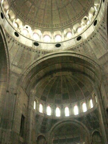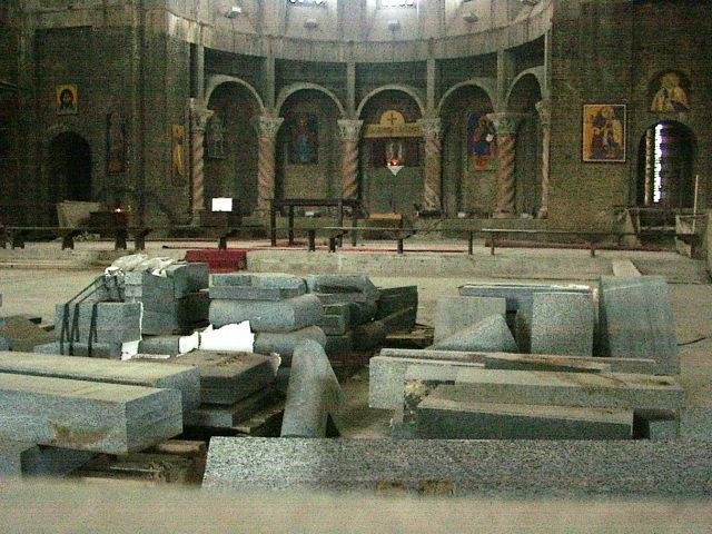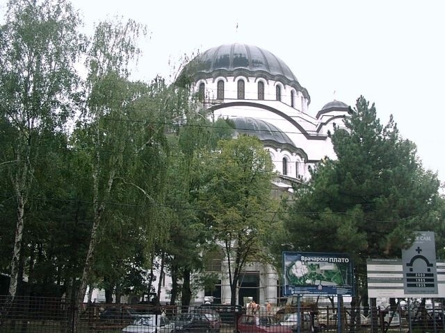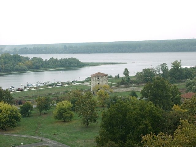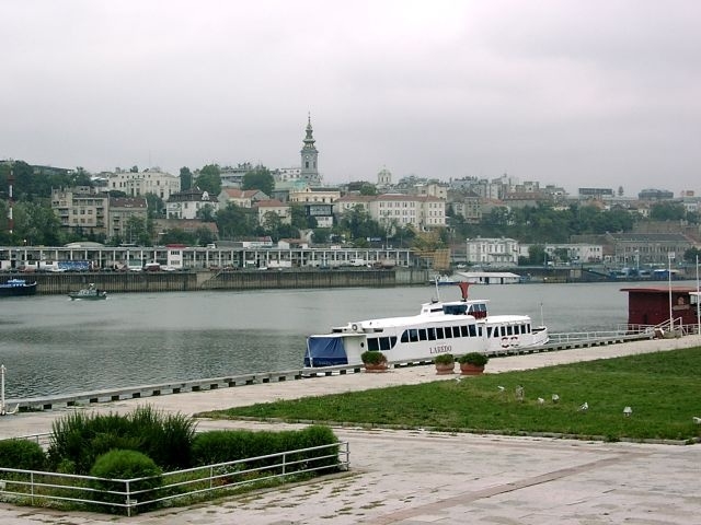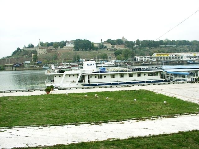 We drove back past the Intercontinental and crossed the Sava into the old city. The bus crisscrossed the streets of the city center to the point I couldn't follow on my map. We passed the 25th of May Museum, then a large park where Tito's modest tomb was located. We went by the Federal Police headquarters and later the military headquarters. Both buildings were badly damaged by the NATO bombing in 1999 and have not been repaired. It amazed us, both that they had been bombed in the very heart of the congested downtown area, and that there had been so little collateral damage. We had a stop at the St. Sava Cathedral, largest Orthodox church in the world. Although it is used for special occasions, it is still under construction. The cathedral's foundations were laid in the 1920s and construction continued into the 1940s. It commenced again in 1989, but only went on for a year before funds ran out. Work recently has begun again, but at a slow pace. Back on the bus, we rode by the Yugoslav Parliament (There's also a Serbian Parliament), City Hall, Republican Square, the National Museum, the National Theater (1869), the University, the old Hotel Moskva, and many government buildings. The bus finally took us up to the Kalemegdan Fortress, now the principal city park. The fortress has its roots in ancient times and has been destroyed and rebuilt many times. Most of what remains today was built by the Austrians (early 18th century). We walked a short distance to the main gate in the old walls, passing by an Army Museum exhibit set up in the moat. Inside, the park was swarming with groups of school children, as well as others enjoying the fresh air in spite of the gloomy and windy day. We walked to a parapet overlooking the confluence of the Danube and Sava Rivers. It was easy to see why this site was perfect for a fortress. Then it was goodbye to Belgrade as our bus departed at 11:15 on our long drive to Mohacs, Hungary. By the time we crossed to the north bank of the Danube at Novi Sad about 1:00, the sun was out. The city is in Vojvodina, an autonomous province of Serbia (like Kosovo was). Vojvodina is a very flat, very fertile area, the breadbasket of Serbia. Novi Sad is its largest city.
