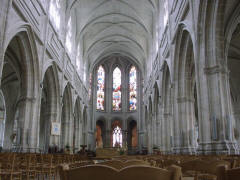 Our group assembled in the lobby at 6:30, and we walked two blocks along the river to the Les Bacchanales restaurant. There we had an excellent three-course meal (as were all the noon and evening meals included with this tour). We also had our first taste of kir, an aperitif made with black currant liqueur (creme de cassis) and white wine. The cathedral was illuminated as we walked back to the hotel about 9:00 p.m. | ||||||