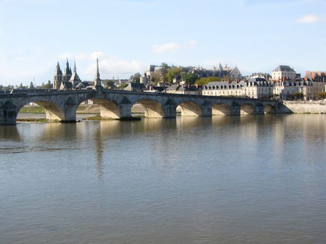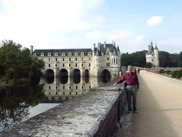 Wednesday, 29 September. The bus left at 9:00 for our visit to three chateaux. We rode across the "donkey-back" Jacques Gabriel Bridge so we would have a view of Blois from the opposite bank. Then we crossed back at the next bridge and followed the Loire southwest. Our local guide pointed out that the Loire was the last "free" river in France, with no locks or dams. We left the Loire at Amboise where we could see in the distance the