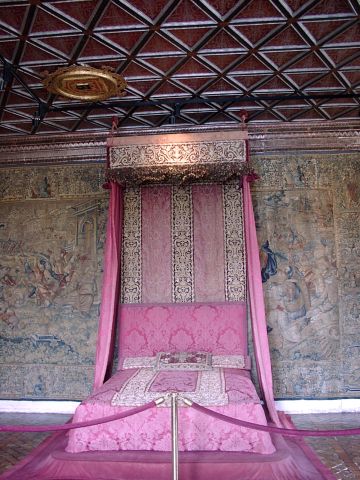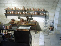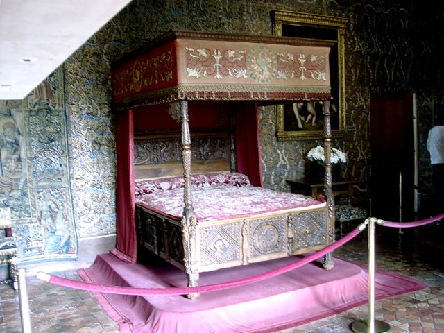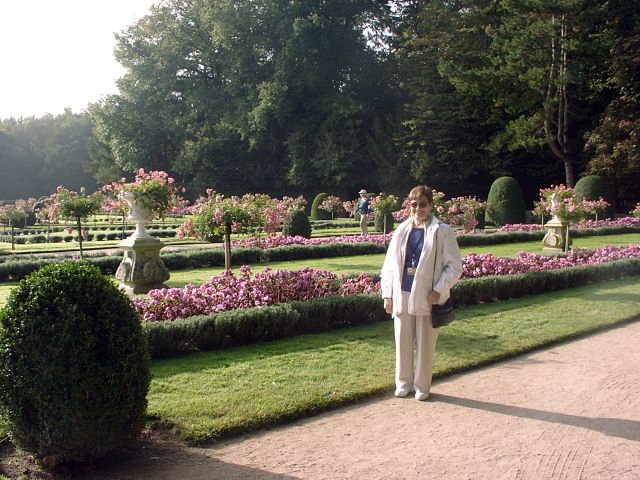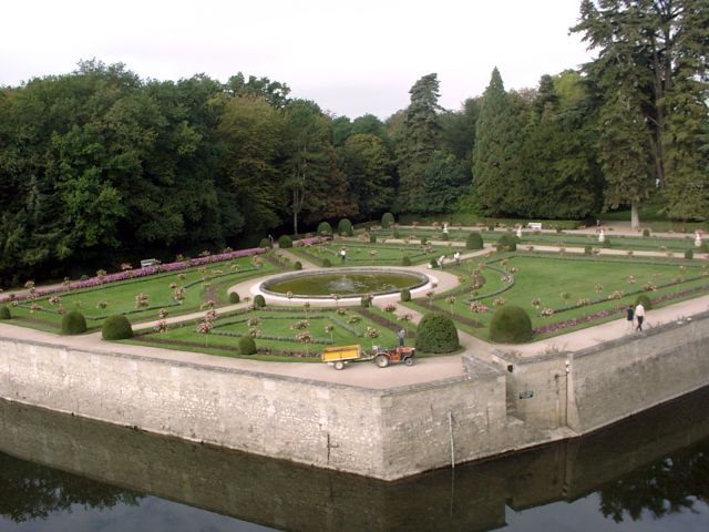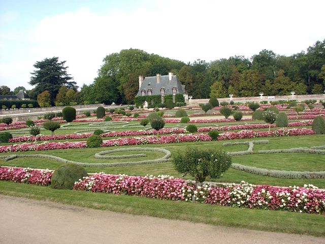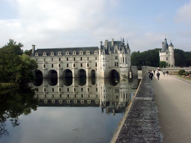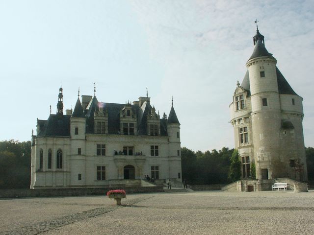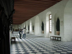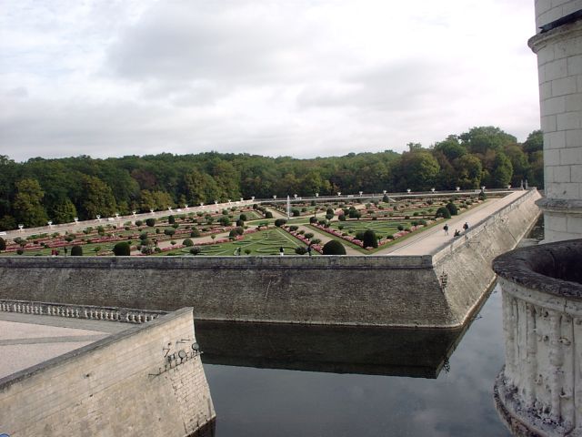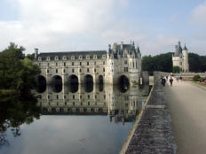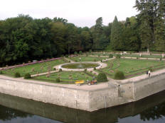 Henry had given Chenonceau to Diane. She had an open bridge built from the chateau to the opposite bank of the Cher. After Henry's death (1559), Catherine forced Diane to give up the chateau. Catherine ruled France from Chenonceau while she was regent for her young son.. It was Catherine who had the long (170 feet) gallery built, enclosing Diane's bridge, thus extending the chateau all the way across the river. During World War II, when the Loire River was the boundary between German-occupied France and Free (Vichy) France, Chenonceau was regularly used as a passage between the two since it had doors on each bank of the river. After going through all the rooms in the chateau, we had free time to explore the two lovely gardens. (The larger one had been Diane's; Catherine built her own garden nearby.) | |||||||