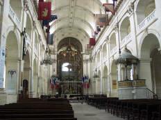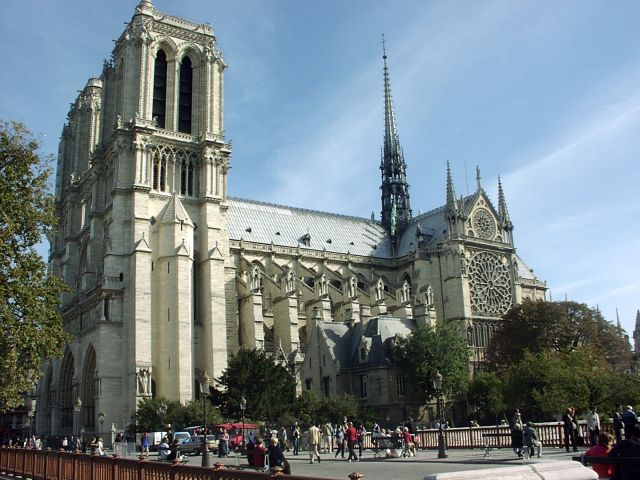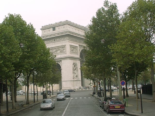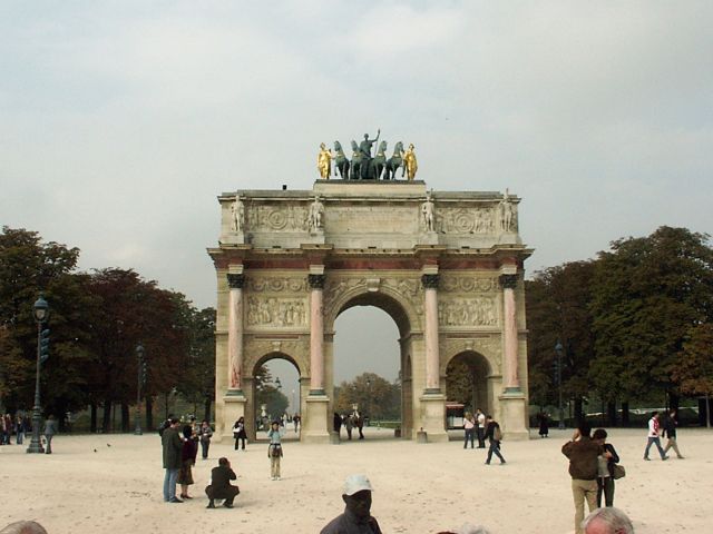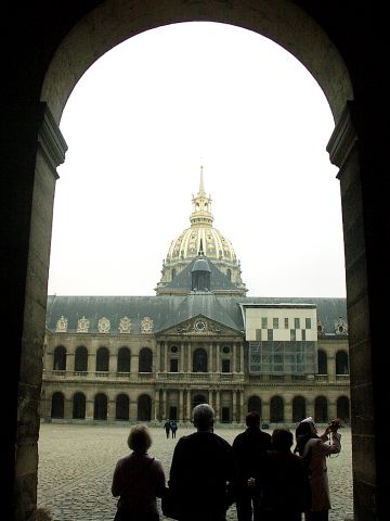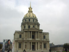 Friday, 1 October. The day was mostly cloudy and there even was a brief rain, but it generally was mild and pleasant. The buses left for the city tour at 9:00. The 115 people had been divided into three "color coded" groups, each assigned to a different bus. Our original group of 27 from the "pre-tour" was now the blue group, augmented by about ten newcomers to even out the size of the groups. The bus tour took us by the Luxembourg Gardens to the Latin Quarter (so named because Latin was once the only common language among the university students who came here from all over Europe). We rode by the Sorbonne, the Pantheon, and the ruins of the Roman Baths of Cluny. We then crossed the Pont St. Michel onto the Ile de la Cite and past Sainte Chapelle, the Concierge, the Hotel de Ville, and Notre Dame. Leaving the island, we followed the Left Bank, lined with book stalls, past the Musee d'Orsay and the National Assembly. We stopped at the Hotel des Invalides (1670) for a 40-minute visit and rest stop. Known now mostly as the site of Napoleon's tomb and the Army Museum, Les Invalides was built (1670) as, and is still used as, a veteran's hospital. The guide took us into the Church of the Tomb, but not to see Napoleon's tomb itself. We did not mind because we had seen it a couple of times before, but there were others in the group who had never seen it. Back on the bus, we drove by the Ecole Militaire, where Napoleon came as a youth, and the Eiffel Tower before crossing the Seine and circling the Arc de Triomphe. We continued down the Champs Elysees, past the Grand Palais and the Petit Palais, to the Place de la Concorde. We drove past the Madeleine and circled the old Opera Garnier in heavy traffic. (The new Opera Bastille is a modern monstrosity.)