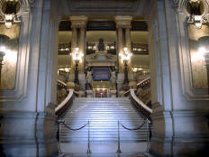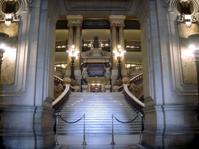 about 12:30. We then toured the galleries, working down from the upper level. The last exhibit we visited, on the ground floor, was a cut-away scale model of the Opera Garnier. By coincidence, the Opera was our next destination. We wanted to take a tour of the interior.