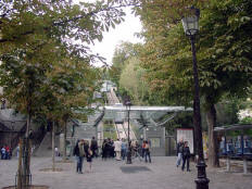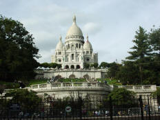 We caught a taxi outside the Orsay about 3:45 and drove to Place del'Opera. The front doors of the Opera were open and we got into the lobby, but there were no tours and we could not get past the Grand Staircase to see the auditorium. Moving on to plan B, we took the subway to the Anvers station to see the Sacre Coeur church in Montmartre, arriving about 4:30. The narrow streets below the church were swarming with Sunday strollers, but that only added to the ambience. We took the funicular up as far as it went, trying to save a few steps, but it still was a long climb to the church, very rough on Jane's ailing knee. We had visited Sacre Coeur twice before, the last