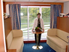 We passed through a 39-foot lock soon after, and I was surprised how fast the water lowered us. That was true of every lock we passed through. About 11:00 we sailed through Vienne, a city that rivals Lyon in its Roman ruins. Jane took a galley tour at 3:30 and saw a demonstration of how crepes were made. There was another port talk and a French lesson before the ship arrived in Tournon at 5:30. The Chateau of Tournon dominated the skyline of this little town (pop. 2000).