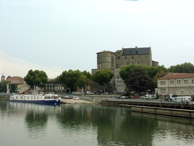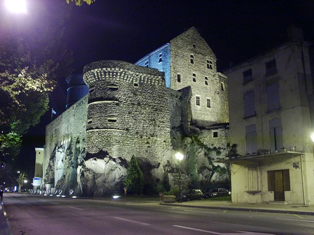 They served a wonderful meal including Lyonnaise potatoes and a delicious, hot, fruit tart that was baked while we ate the main course. Jane and I were in the middle group driven back to the ship and got there about 10:00. We had driven by the illuminated chateau on the way, and I walked a block back to it to take a picture of it.