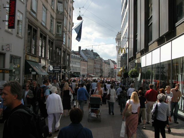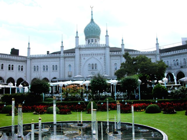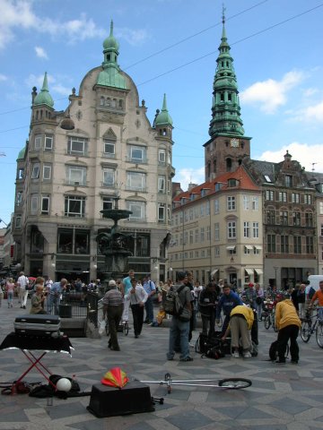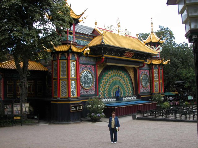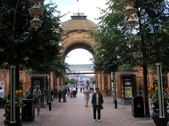 About 2:00, after lunch on the ship, we took the shuttle back to Kongens Square in the central city. We walked the full length of the Stroget (pedestrian street) to Tivoli Gardens (1843).
