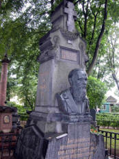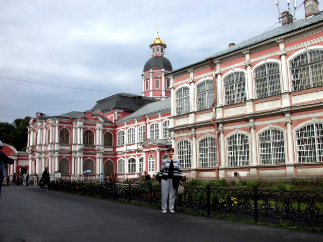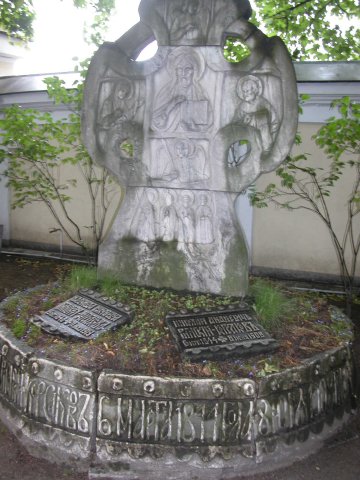 We visited the neo-classical Cathedral (1790) and saw Nevsky’s "golden" sarcophagus. (It looked tarnished.) But having just seen St. Isaac’s and the Church on the Spilled Blood, it was a disappointment. In fact, the entire complex was very run down and badly in need of restoration. Our guide then led us through Tikhvin Cemetery, burial place of many famous people. We saw the graves of Dostoevsky, Rimsky-Korsakov, Tchaikovsky, and Mussorgsky, among others.