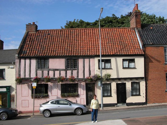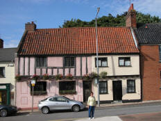 We paid more attention to the buildings along Northgate this time. One of the buildings was called “Tannery House” and just beyond it was Tannery Score.” (Each of the several paths from the road to the river was called a “Score.”) This was of particular interest because John Leeke (abt. 1453-1529), maternal grandfather of Robert Peck, had been a tanner in Beccles. However, the Tannery House we saw did not appear to be anywhere near that old.