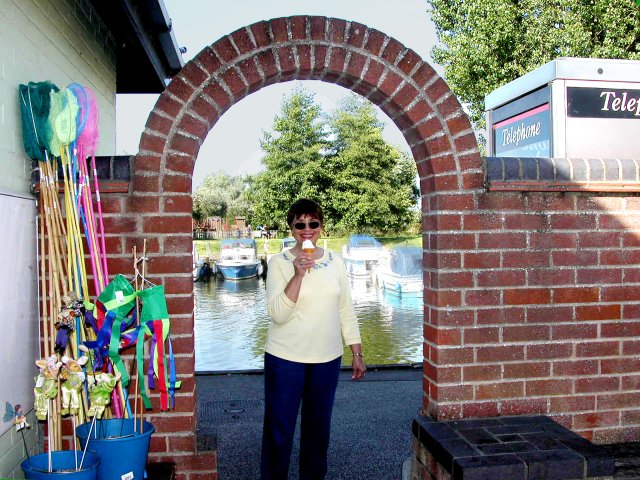 We walked out on the bridge across the Wavenly river and found a beautiful view up the river to the church in town. I counted boats moored in the river and marina and concluded there were more than a hundred. Jane found a place on the marina to get her afternoon ice cream. We got back to the B&B about 5:30 and rested for a while.