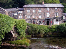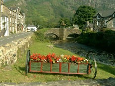 Wednesday, 31 August. We had another big breakfast at 8:00 and were on our way out of Caernarvon by 9:00. We would be driving through Snowdonia National Park most of the day. Actually, we had been in the Park almost from the time we entered Wales. The 840 square miles park stretches from Conwy in the north to Machynlleth in the south. The area was sculpted by glaciers in the Ice Age and includes several small mountain ranges (3560 feet the tallest), lakes, waterfalls, and abundant wildlife. As we drove toward Beddgelert, our next stop, we found ourselves on a very narrow, twisting road with new mountains streams, and lakes at nearly every turn. Beddgellert is a small village set amid steep mountain slopes and has a small river running its length.