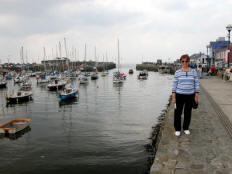 By 4:00 when we got to Aberaeron, it was sunny and warm. I had picked this old fishing village from information on the Internet. I told Jane it would be very quiet, nearly deserted, but was supposed to be very picturesque. Well, it certainly was picturesque, but it was anything but quiet and deserted. The narrow little streets were swarming with tourists. When we found our B&B, the Arosfa, right on the marina, every place in the public parking lot and on all the nearby streets was taken. I finally parked illegally at the curb right across from the Arosfa, almost blocking the entrance to the parking lot.