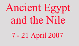Page 1 2 3 4 5 6 7 8 9 10 11 12 13 14 15 16 17 18 19 [History] Introduction. It was back in 1997 that we first decided to take a trip to Egypt. Early in the year we called Grand Circle Travel (GCT) and tried to book the trip for November, but they were already sold out. We decided we would sign up for the following November (1998) as soon as those dates became available. Then in the fall of 1997 there were two terrorist attacks against foreign tourists: one in September killed several German tourists near the Cairo Museum; the other in November killed 62 tourists at Luxor. (No GCT groups were involved, but that's when we would have been there if the tour hadn't been sold out.) We decided not to go until things quieted down in the Middle East. In retrospect, 1998 probably would have been the safest time to visit Egypt because security was tightened up so much. As it was, we finally decided to go only after some of our close friends went in 2006 and gave us their first hand perspective. We chose April because the weather seemed moderate then, almost as good as November. Saturday, 7 April. We left our home at Massanutten and drove to our son Joseph's house in Culpeper. He had arranged for his friend Mark to drive us to Dulles Airport outside Washington, D.C. We got to the airport around 11:30 and checked in. For reasons known only to the TSA, after going through the usual passenger security screening we were taken to another section of the airport (led by a Muslim woman in a head scarf) and subjected to a rigorous 20-minute search of our persons and carry-ons. Our 13:40 flight to New York's JFK was uneventful and we were there by 15:00. We had to change terminals, which in the past had always been a nightmare at JFK. This time, though, using the new AirTrain for the first time, it was a snap. We had lunch in the terminal. We boarded at 17:15 for our 18:30 EgyptAir nonstop flight to Cairo. We were in the air at 19:00, and a hearty dinner was served an hour later. After that we tried to rest. We were thankful that EgyptAir has about three inches more leg room in coach than most other airlines. Sunday, 8 April. We rested until about 8:30 (2:30 EDT). (Thanks only to my super-intelligent world time watch, we discovered that the time difference between New York and Cairo was only six hours, not seven as we had been led to believe.) A generous breakfast was served at 10:00, and we landed in Cairo at 11:20. Immigration processing was slow and the luggage handling (by GCT) was a fiasco. We stood a full two hours in the terminal, and it was very hard on Jane with her artificial knees. At least it gave me plenty of time to find an ATM and get some Egyptian puunds (US $1 = E5.70 or E1 = $0.175). We finally left for the hotel on three buses at 13:30. Fortunately the weather in Cairo was very pleasant, in the mid-70s (10 F cooler than the day before). From that point on, things went much more smoothly. We were at the Marriott Cairo Hotel at 14:00 and in our room at 14:30. Our room was in the Zamalek Tower and faced the Nile, but our main view was of the traffic ramps leading to the bridge. We cleaned up, then rested for a couple hours. The hotel, technically the Cairo Marriott Hotel & Omar Khayyam Casino, was very impressive. Built on Gezira Island in the Nile River right next to downtown Cairo, it consists of two modern, high rise towers, one on either side of the former Al Gezira Palace (1869). The palace has housed many dignitaries, but perhaps it's greatest claim to fame is as the venue of the first performance of Verdi's opera Aida. Most of the hotel's public areas and restaurants are in the old palace which has been restored to its former splendor. The three Program Directors had arranged for a group dinner at 18:30 in the Marriott's Egyptian Restaurant, even though our brochure said dinner tonight was "on your own." (Reparations, perhaps, for the fiasco at the airport?) This was an excellent and very welcome idea. At the entrance to the restaurant there was a brick kiln where three women were making and baking flat bread. All the restaurant employees wore tradition Egyptian costumes, and all the food (and there was a lot of it) was traditional Egyptian food. The meal even included wine (needless to say, not an Egyptian tradition). We got back to our room about 20:30 and went right to bed. | |||