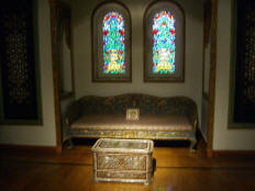 description enjoying the pleasant afternoon. Looking at my map, it looked like it wasn't far to the Cairo Museum, so I decided to go there to check out the gift shop. As I got to the next bridge (6 October), I encountered a daunting maze of ramps and cross streets, but managed to get through to the museum. The gift shop was a disappointment, but I did buy a costume jewelry set for Jane. It resembled one that had been found in King Tut's tomb. As I started back, a friendly man (who said he was a teacher) offered to help me get across the busy street (where the drivers completely ignored the traffic lights and pedestrian signals), then insisted on leading me to a "government bazaar" where, he promised, I would get wonderful bargains. When we got there, it looked like any other tourist shop. I looked around but t really wasn't in the market for souvenirs.