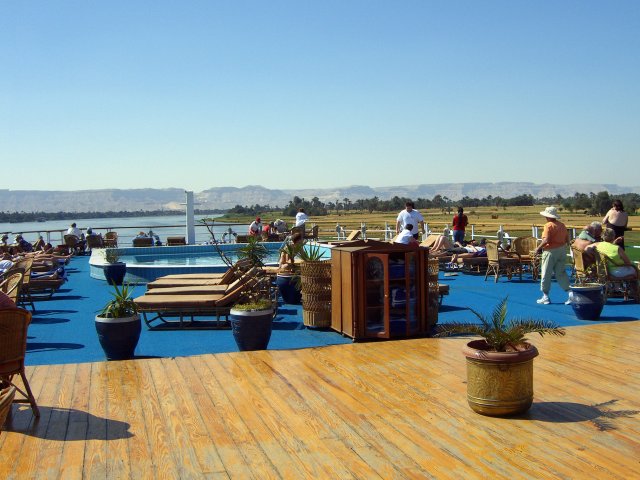 toward Qena. It was a beautiful day and we sat on the sun deck in the shade of a