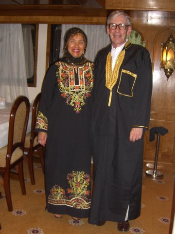 I (and many other passengers) wore our galabeyas to dinner. The galabeya party