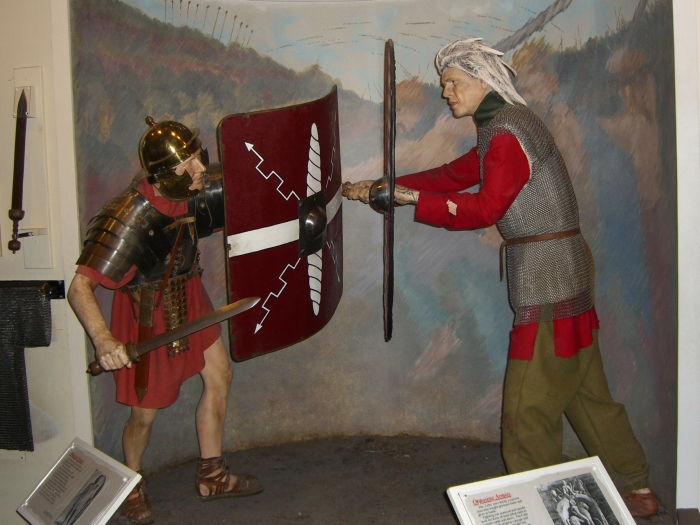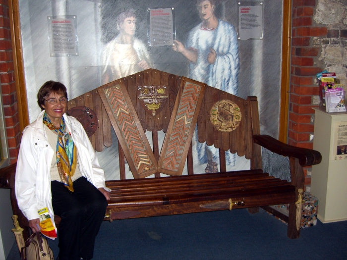 train schedules from the Internet, but it always pays to double check. And it's a good thing I did. All the trains were canceled for the day (Sunday) to allow work on the rails. Buses were substituted, but all connections were chancy. The station master told me the trip to Halesworth might take several hours each way instead of the two hours the trains normally took. Well, so much for those plans! I rushed back to the excursions desk to try to book the "Roman Colchester" tour that Jane was taking. They told me it was sold out but that I could try going to the check-in point to see if anyone failed to show up. We did that and there were three last minute cancellations, so I got on the tour. The bus left at 9:30 for the 45 minute drive to Colchester. Colchester is the oldest recorded Roman town in the British Isles. It was the capital of Roman Britain until 61 A.D. when it was destroyed, along with London and other Roman settlements, during the rebellion led by Queen Boudica.