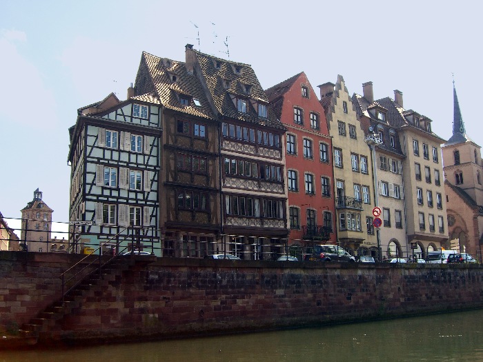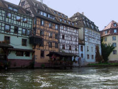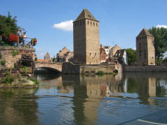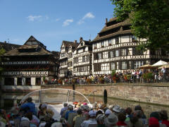 Page 1 2 3 4 5 6 7 8 9 10 11 12 13 14 15 16 17 Friday, 14 August (p.m.). Unfortunately, the ship was moored quite a distance from the island where the old city center of Strasbourg lies. We left the ship at 3:00. It was a good 25 minute bus ride to the drop-off point (beyond Place de l'Etoile), then another 20 minutes to walk to Rohan Palace. All three groups from our ship (134 persons), plus probably a hundred others, piled into a single open canal boat for the cruise around the city. The sun was out and it was quite warm. We sailed west past the Old Customs House and past Petite-France, the covered bridges, and the Vauban Dam where the Ill River splits into two branches for more than a mile, making old Strasbourg an island.