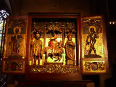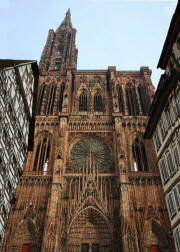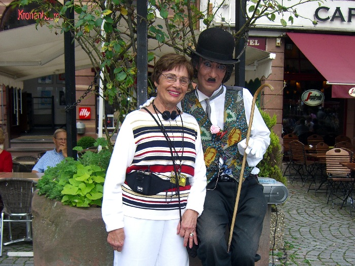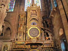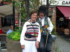 It was 4:40 by the time we got off the boat. We were supposed to meet in front of Notre Dame Cathedral, a short block away, at 5:15 to walk back to the bus, so we only had 35 minutes. Our Tour Director was still talking to us as it passed 5:00, so Jane and I just walked away and entered the Cathedral by ourselves. We had seen it before, but didn't want to lose this chance for another look. Construction of the red sandstone Cathedral began in 1176, and it took more than 260 years to complete. It was the tallest building in the world until 1874. The main tourist attraction inside is the huge Astronomical Clock (1843). Oddly, the only time all the many animated figures of the clock move at one time is at 12:30 p.m. The bus got us back to the ship just after 6:00. Dinner was at 7:15. If GCT had just scheduled the bus to leave the city at 6:00 instead of 5:30, we all could have had another half hour in Strasbourg. After dinner we went to the lounge to see the "French Chansons" show with Armand (accordionist) and Cecile (singer). We managed to get seats in front. Late in the show, Cecile, not a small woman, circled the stage, then jumped right in my lap. She tried to get me to sing the next high note as she went up the scale, and when I did my best, she gave me a big (but fake) kiss. Page 1 2 3 4 5 6 7 8 9 10 11 12 13 14 15 16 17