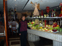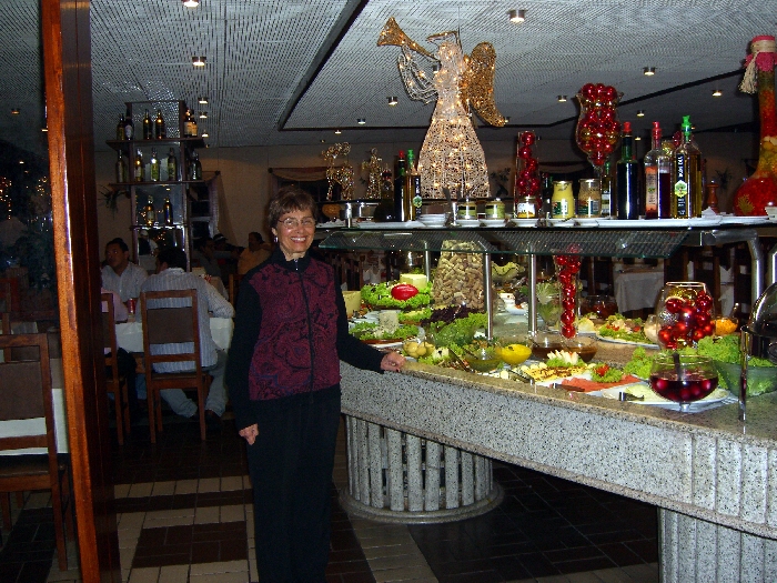 The concierge highly recommended the Oasis churrasco (barbeque) restaurant, and we decided to try that. He said they'd pick us up by car, and that was a big selling point in view of the rain. The car picked us up at 7:30. When we arrived at the Oasis, we got two surprises. First, there was a $15 charge for what we thought was a courtesy car, twice the taxi fare. Second, as we entered the Oasis, a woman from HAL greeted