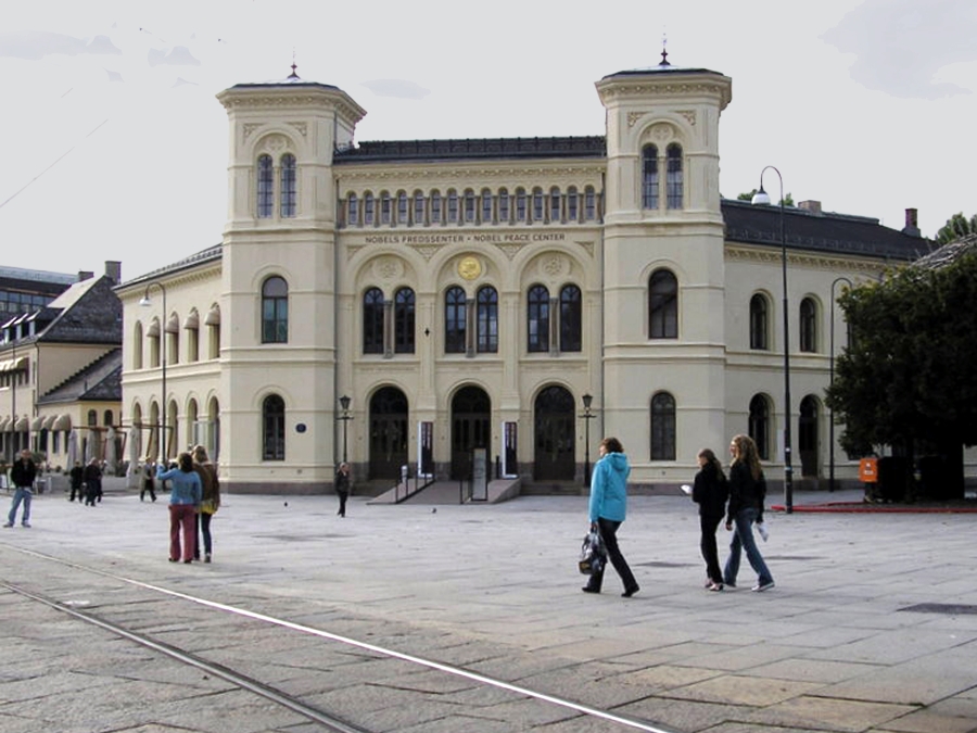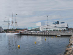 Toward the end of our visit to the Norsk Folkemuseum, I was so busy taking photographs that I didn't notice that the rest of our group had started toward the exit. Not sure which way they'd gone, I hurried off in the wrong direction. I came upon what appeared to be an entire old village with streets and all. Unfortunately though, I didn't have time to explore it. I caught the group in the parking lot but was the last to board the bus. We left the Open Air Museum about 3:40. Going back through the city, we passed the Nobel Peace Center, opened in 2005 in the former Oslo West railway station (1872). The Center is a showcase for the Nobel Peace Prize laureates and their work. We were back at the ship by 4:00. We browsed in the shops on the pier for a short time before boarding the ship.