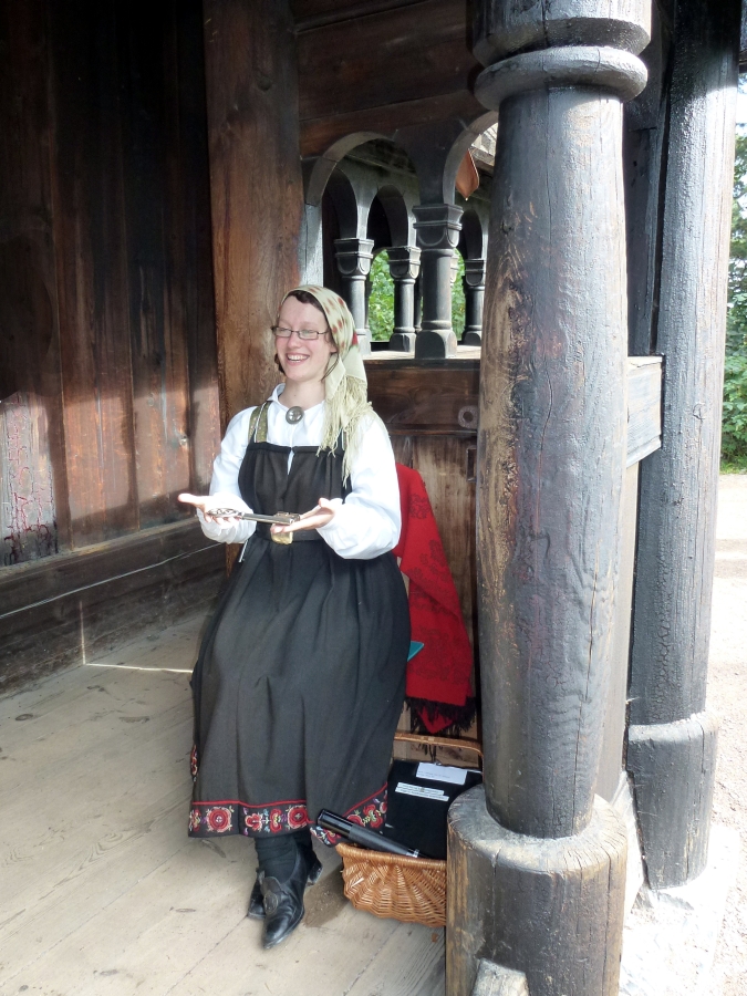 Our final stop was at the Norsk Folkemuseum, the world's first open air museum (1881). The guide led our group around for an hour, but it wasn't nearly enough to see this large collection of old buildings. The highlight was the Stave Church (1212) from Gol, one of the first buildings moved to the site. Imagine, a 900 year old wooden building! We've visited many open air museums, but I don't recall seeing any other wooden building so old. There were many farm buildings, some solitary and others in clusters. Except for Stave Church, our guide did not take us into any of the other buildings. We were able to explore a few small ones on our own, and in others cases we could view interiors through windows or doors.
