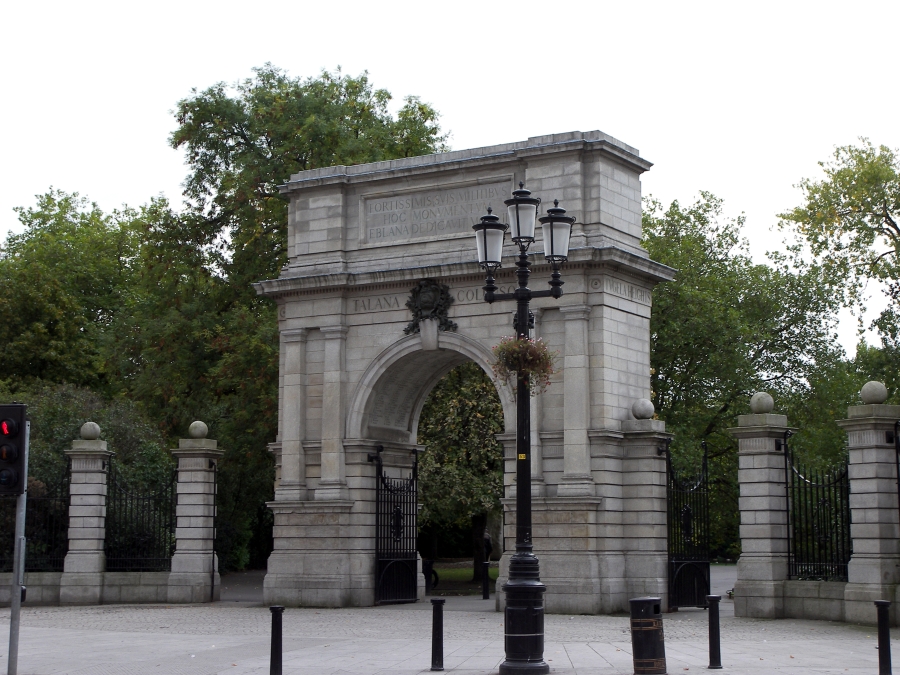Leaving the river, the bus took us south to St. Stephen's Green (1664), Dublin's largest park (22 acres) and one of its most prestigious areas. Grafton Street, Dublin's main upscale shopping street, begins at one corner of the Green and ends at Trinity College.