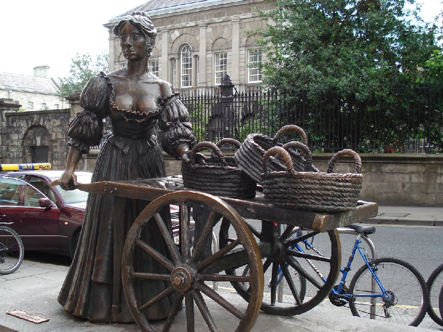 bronze Molly Malone statue (1988), as she wheels her