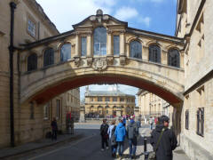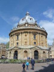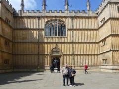 At our first stop we walked down a series of narrow outdoor passageways to the Turf Tavern, dating to the 13th century. In one of its courtyards we sat at the table famous as the place where Bill Clinton "did not inhale" while a student there. Masterpiece Theater's Inspector Morse was another famous (though fictional) patron. It was only a short walk to the University’s beautiful Bridge of Sighs (not really a replica of the one in Venice). Then we stopped briefly at the Bodleian Library (1602), the University's main research library and one of the oldest libraries in Europe. We also passed a very different library, the Radcliffe Camera (1748), originally a science library.