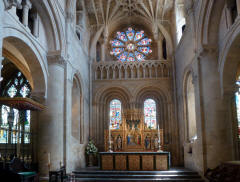 In the meantime, though, we could not resist going into the University Church of St. Mary the Virgin, right across the street. The church dates from the 13th century and played an important role in the early days of the University. It was substantially rebuilt around 1500. We did not have time to climb the tower for its reportedly splendid view, and I doubt we would have tackled it even if we had time. Lee picked us up about 13:30 and we headed west into the Cotswolds. Our first stop, about 14:20, was at the village of Swinbrook to see the wisteria-covered Swan Inn, a short distance off the main road.. It had been used in an episode of Downton Abbey, when Tom, the chauffeur and Sybil, the youngest daughter, eloped and spent the night there. Lee then followed the narrow country road through Fulbrook to Burford, a small town on the River Windrush. As was the case throughout the Cotswolds, it seemed that every building was built of the characteristic golden limestone, although a few of them were stuccoed over. We also got our first close up look at the ubiquitous low walls made from the same stone. It was going to 15:00 when we finally stopped for lunch. We ate at Huffkin’s' on High Street. This was the original establishment of a small chain of "bakery and tea rooms." The food was very good, but the meat pies we ordered turned out to be dinner-size portions, way too much for lunch. Of course, that did not stop us from eating them. From Burford Lee drove us to our final destination for the day, Chipping Campden, about half an hour away. Sometimes called the Jewel of the North Cotswolds, this small market town is one of the most popular in the Cotswolds and is noted for the 14th-17th century houses on High Street. We got to the Cotswold House Hotel there at 16:15. After checking us in, Lee left for the day. This very contemporary hotel occupies three converted town houses (1815) right in the center of town. As is often the case when separate buildings have been connected, the inside of the hotel was somewhat of a warren. But everything was very modern and our room was excellent. We were still feeling stuffed from our heavy lunch, so we decided to walk some of it off by exploring High Street. Right in the middle of the town, just a few steps from the hotel, we found the old Market Hall (1627). High Street also had many shops, tea rooms and other commercial buildings among the residences, but most of them were closed. (It was going to 18:00.) We passed several residences that had names instead of addresses (e.g., Molly'' Cottage). We walked as far as St. Catherine's Catholic Church, then went back to the hotel. They had a nice menu at the hotel bar (choose two out of three courses) so we went down about 19:15 and ate there. Then it was early to bed. |