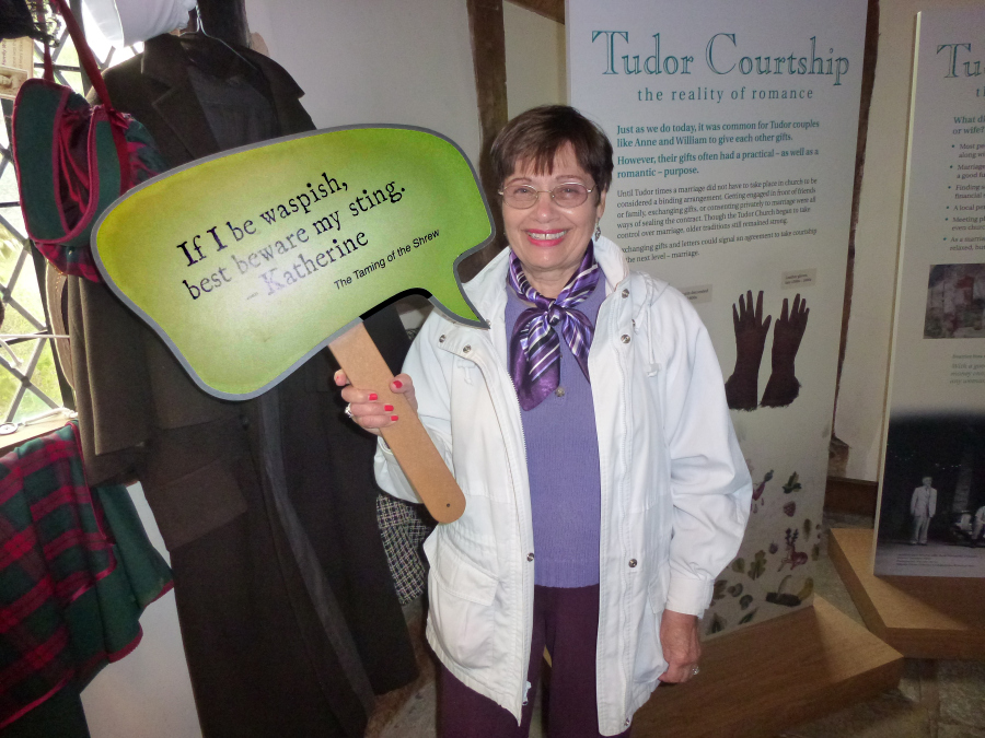 Lee got us to Stratford about 9:30 and he was able to park fairly close to Shakespeare's house, our first stop in Stratford. William Shakespeare (1564-1616) was born and lived his childhood years in this house. After later inheriting it from his father, he owned it for the rest of his life but did not live there. (He lived in London.) The house was restored beginning in the mid 19th century. The tour of the house tries to create a picture of family life during Shakespeare 's time. After the tour we went into the backyard where docents explained things about the house and garden and also performed excerpts from Shakespeare’ works. We were at the house for almost two hours.