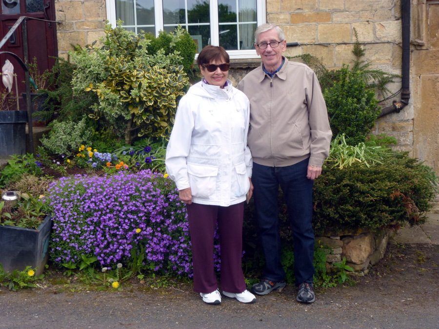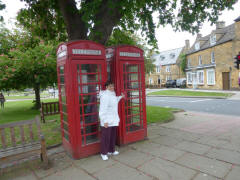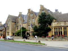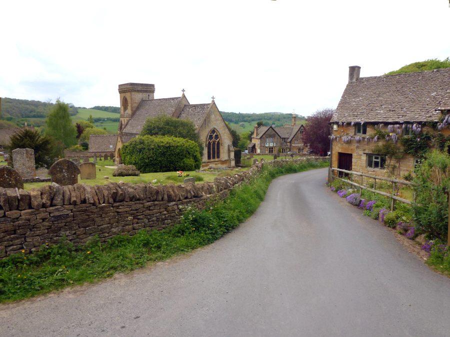 We were supposed to meet Lee at 15:00 and he was there waiting. We drove south for about half an hour to the Broadway Tower, an isolated castle-like tower said to have been built (1799) as a "folly." From there we made a loop through the small villages of Snowshill, Stanway and Stanton, sometimes taking narrow farm lanes to get from one to another. In Snowshill, a very compact village, we walked completely around the grounds of St. Barnabas Church (1864). A funeral was in progress and we had a short talk with the young gravedigger. In Stanway we saw only a few scattered houses. Although there was a large manor house (Stanway House), we did not see it. Stanton was a typical Cotswold village, stretching out along a wide "S" curve. Our last stop, about 16:15, was Broadway, a large village sometimes called the "Jewel of the Cotswolds." The weather had been changeable all day and at this point a sporadic light rain began to fall. After a brief spin around the village, Lee dropped us off on the east end of High Street, lined with red chestnut trees and an almost unbroken line of limestone buildings, many dating from the 16th century. We walked as far as the Lygon Arms (pre-1532) and turned back for our 17:00 pick up. Chipping Campden was only a few miles from Broadway , and we were in our hotel by 15:15. We decided not to do any more exploring that evening. The weather was threatening and we were tired. We ate in the hotel bar again. By this time we had discovered that there was a small dining room behind the bar area and we sat there.