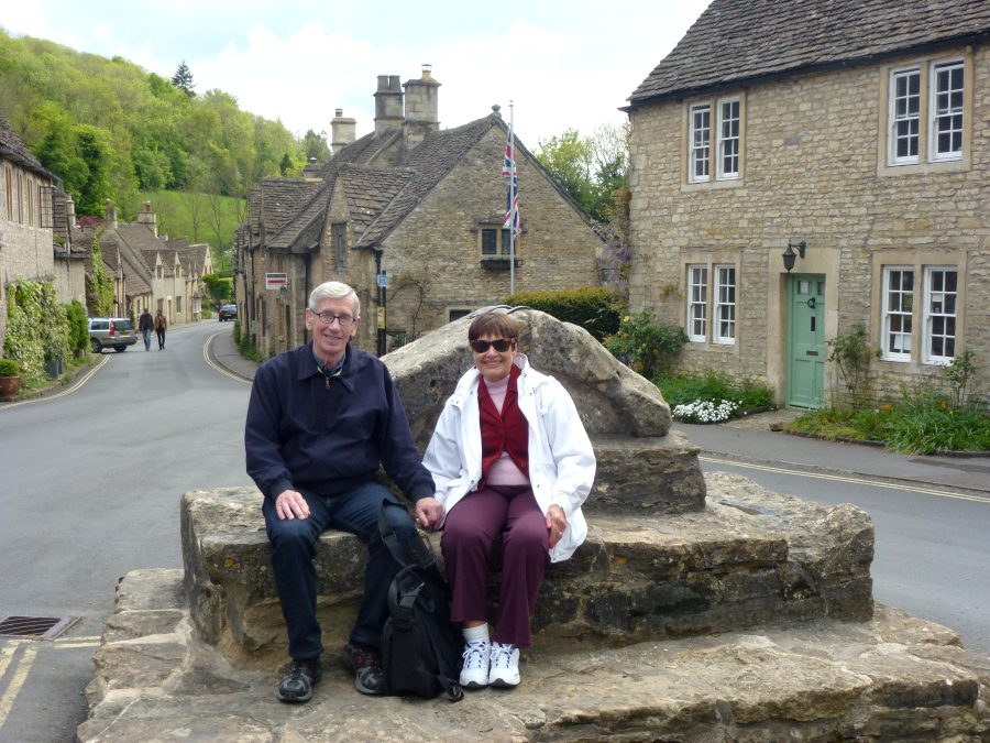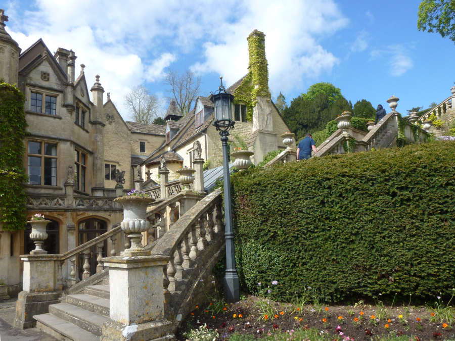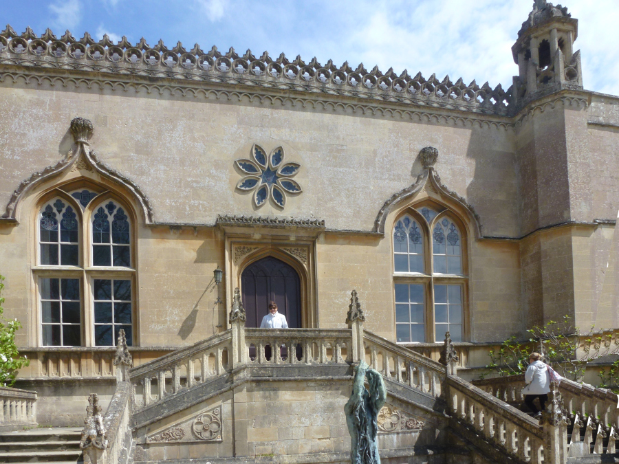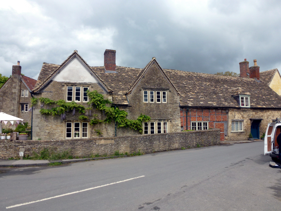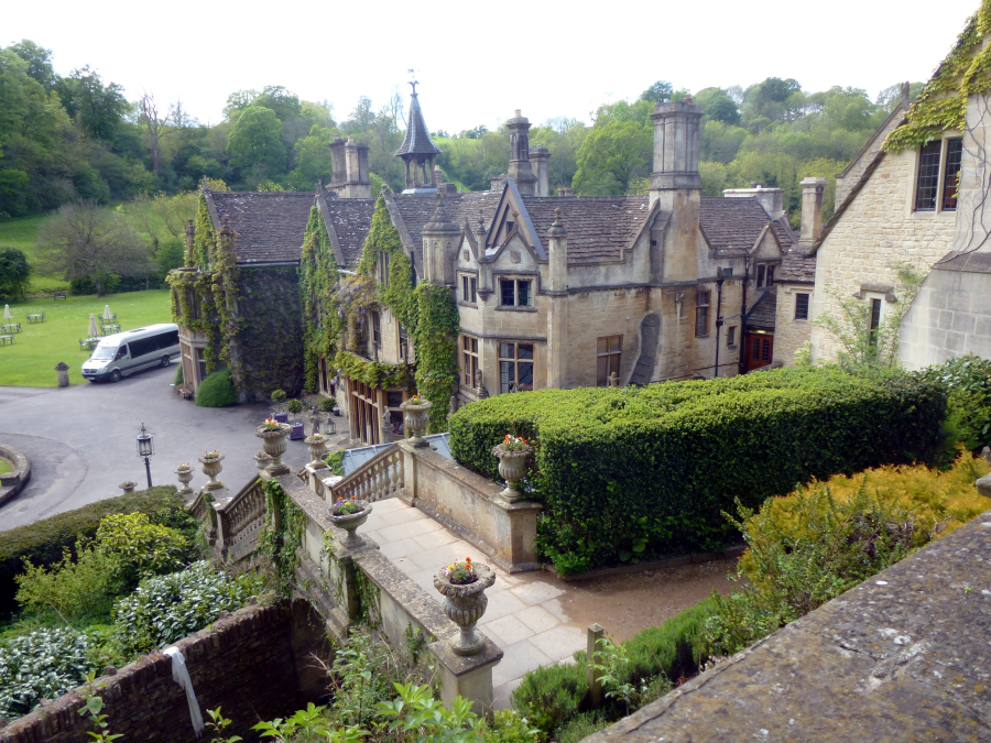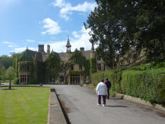 From Stow we headed south again, passing through the large village of Bourton-on-the-Water and going around the town of Cirencester. Later we passed the unusual Cotswold Airport at Kemble, where older planes are cannibalized or rebuilt. We arrived at Lacock shortly after noon. We sat down for lunch in a cute cafe' on the main street, but it soon became apparent that we would not be served for a long time. We left, bought a sandwich in a grocery store and ate it outside sitting on a bench. Lee drove us around this very pretty village and eventually to Lacock Abbey. The Abbey was founded as a nunnery in the 13th century, but it was closed in the 16th when Henry VIII seized most monastic property. It remained a private residence until purchased by the National Trust and turned into a museum. It was very interesting, and we spent over an hour going through it. We also explored the gardens. We left about 14:30 and drove the few miles to Castle Combe. This is an exceptionally beautiful little village, but the 12th century castle that gave the place its name has been gone for centuries. We spent about half an hour looking around the village before Lee led us to the manor house. The original Manor House was built in the 17th century, but it was rebuilt in the 19th. It is now a five star hotel with 48 rooms and 365 acres of gardens. We did not go inside, but we explored the beautiful grounds.