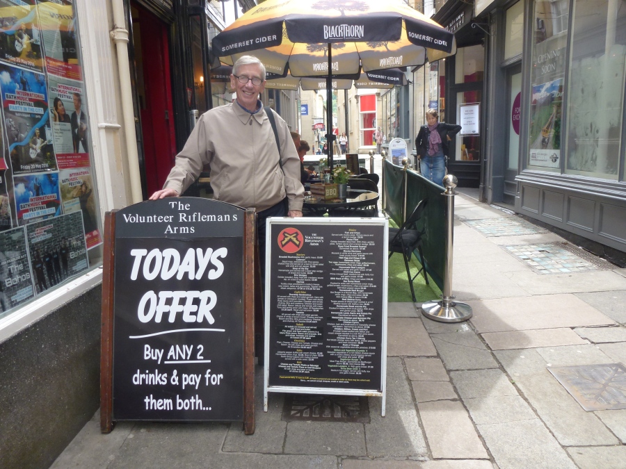 We walked just over a block north to the Circus, a large traffic circle surrounded by big townhouses. Built between 1754 and 1768, it was one of Bath's most prestigious neighborhoods during Jane Austin's time here. Just a couple blocks down Brock Street is the even more prestigious Royal Crescent (1767-1774), consisting of 30 large townhouses. One of them, No. 1 Royal Crescent, has been restored and furnished to reflect life in the 18th century. It just opened to the public in 2013. We spent more than an hour going through it. It started raining just as we went in and continued for most of our visit. The sun was out when we emerged. We walked south through the a park-like area. We had a great view of the entire Crescent as we looked back. On the way back we went through Victoria Park where Jane managed to find her afternoon Magnum bar. It was about 17:15 so we headed back to our hotel. We rested for a while before going out to dinner at 19:15. We thought about going back to the Joya but, since we had done quite a bit of walking, we opted for Tilly's Bistro, just a few steps away next to the Sally Lunn. The food was great and the service, too. Best of all, it was quiet.